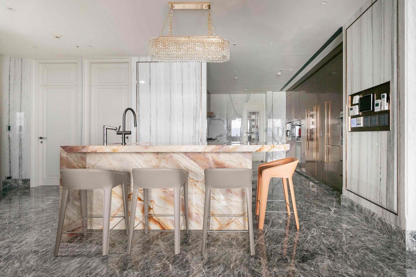 Transform your space with our luxury stone bar counter, crafted from rare stones like Blue Onyx and Azul Macaubas. Featuring striking veining and translucent layers, it reflects light to create a captivating centerpiece for upscale lounges or elite cocktail bars. Non-porous and heat-resistant, this artisanal masterpiece blends elegance with functionality, perfect for effortless entertaining in high-end settings.