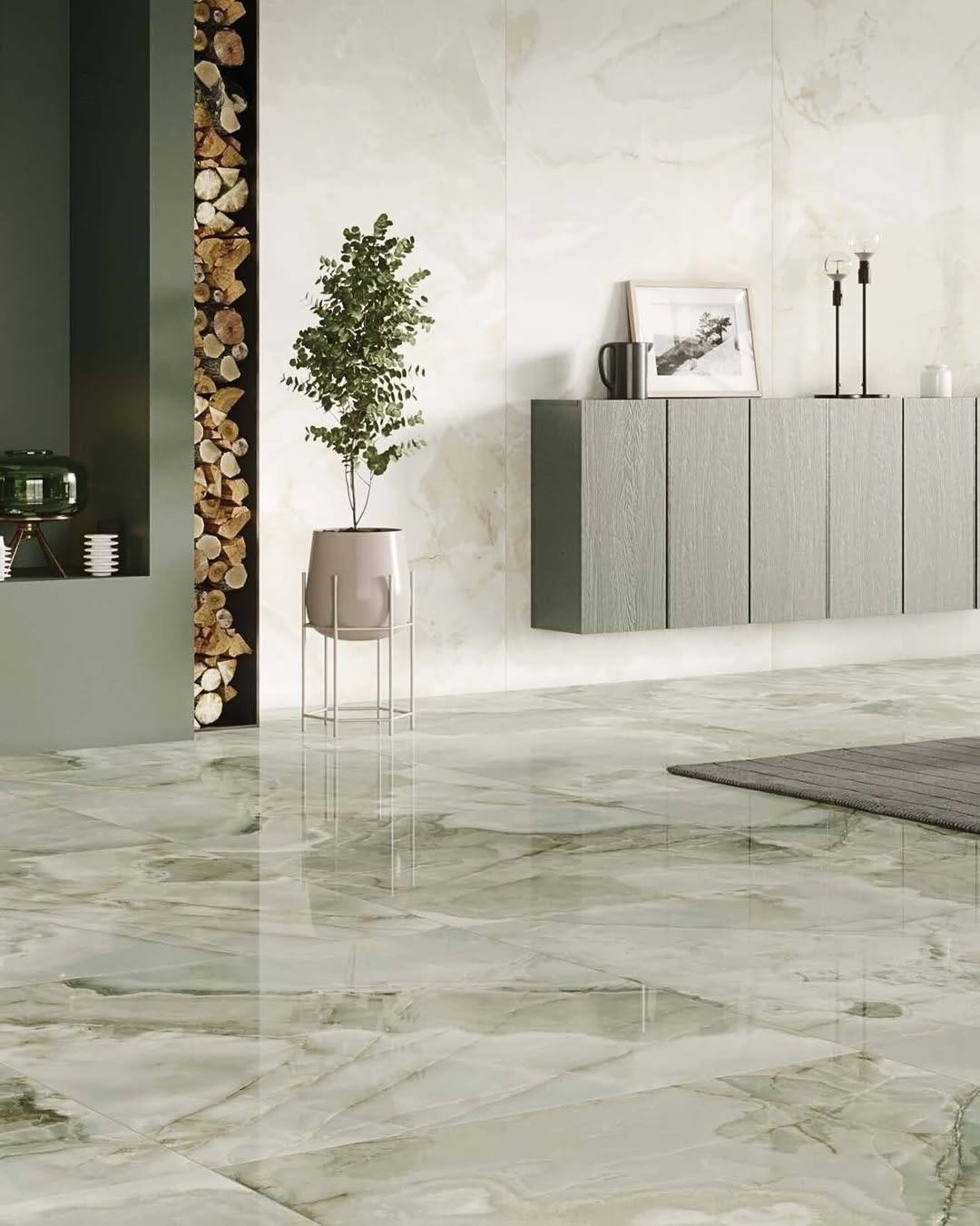 Non-Slip Jade Floor Tiles in Spinach Green and Icy Gray