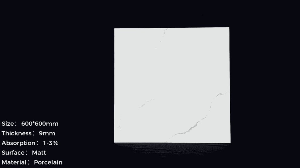 Matte Porcelain Tile 600×600mm | 9mm Thick | 1–3% Water Absorption